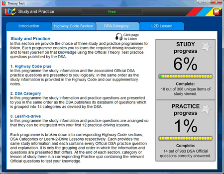 - 14 properly balanced pre-set simulated Theory Tests based on our extensive experience (as one of the largest national driving schools in the UK) of the most commonly occurring test questions all under realistic exam conditions.